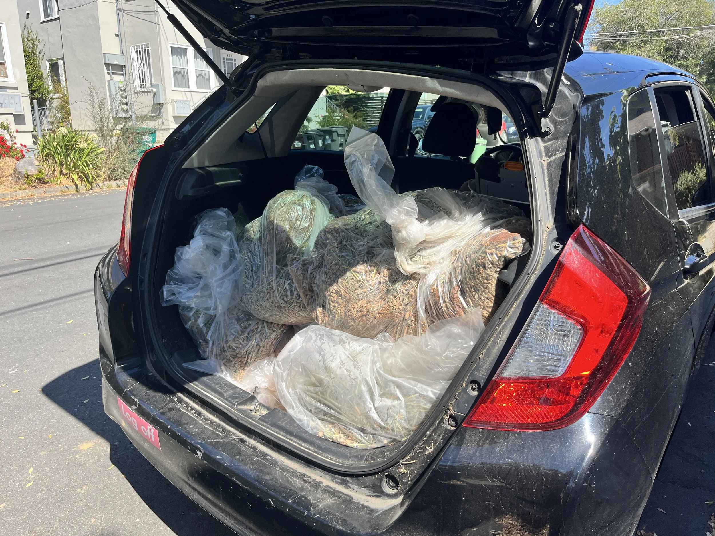 I do micro-hauling mainly at Rabbit Ears Rescue in Oakland. Please coordinate and pick up what you need for your compost and garden in your town!